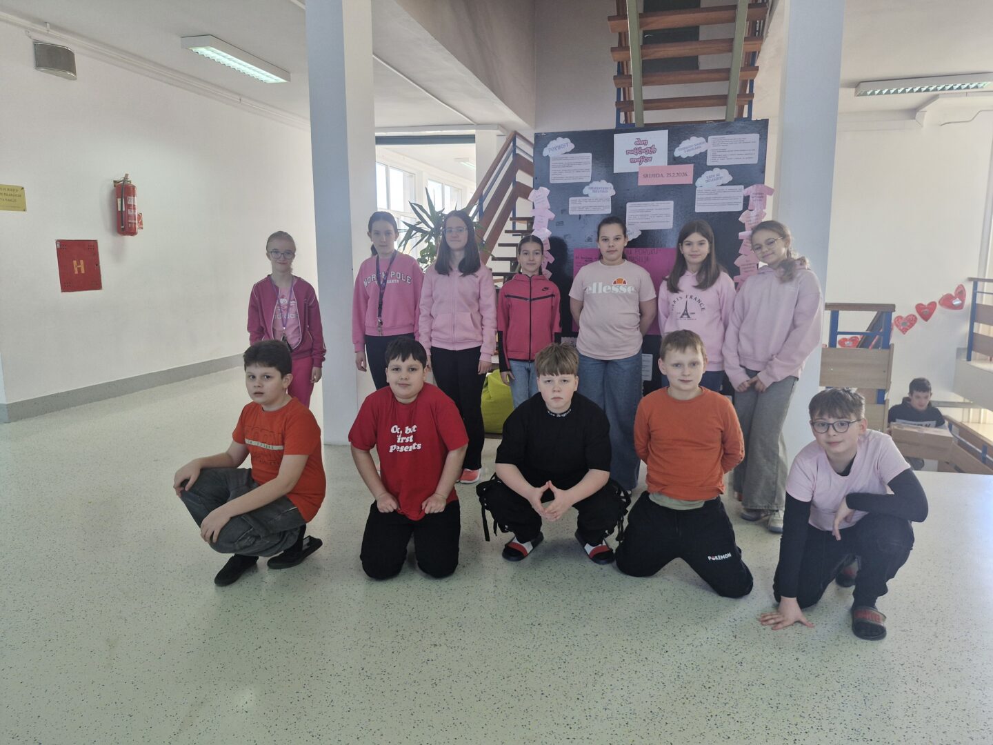 U srijedu, 25. veljače, u našoj školi obilježili smo Dan ružičastih majica, međunarodni dan borbe protiv vršnjačkog nasilja. Ovim danom podsjećamo na važnost međusobnog poštovanja, prihvaćanja i pružanja podrške svima koji se mogu naći u teškim situacijama.