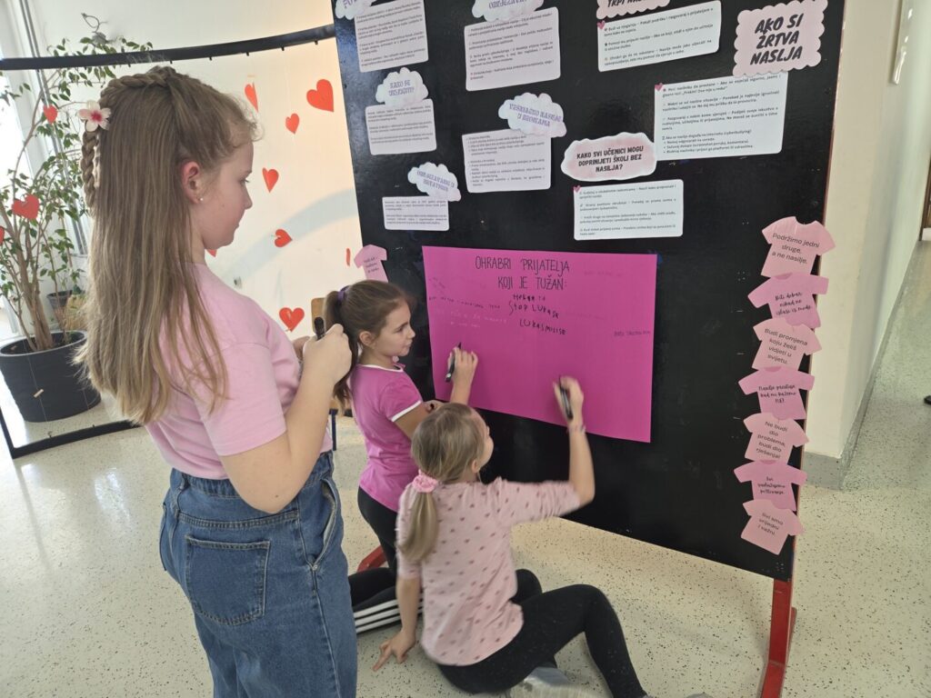 Učenici su se uključili u obilježavanje ove važne teme kroz različite aktivnosti. U holu škole pisali su podržavajuće poruke svojim prijateljima i tako poslali snažnu poruku zajedništva, prijateljstva i međusobne podrške. Poruke su nas podsjetile koliko je važno biti dobar prijatelj i pružiti pomoć kada je nekome potrebna.