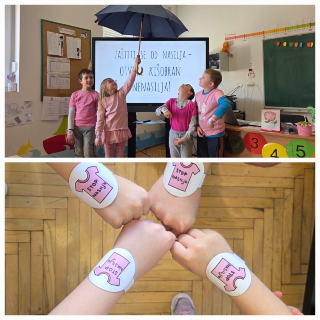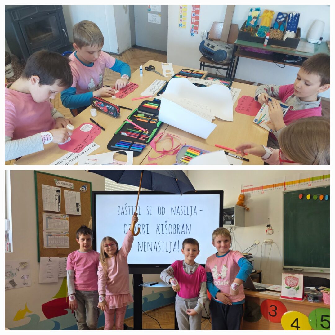 U povodu Dana ružičastih majica učenici 1. ,2. i 3. razreda PŠ Levinovac zajedno sa svojim učiteljicama razgovarali su o važnosti međusobnog poštovanja i nenasilja. Prisjetili su se zašto se obilježava ovaj dan te su napisali svoje poruke obećanja, kako će doprinijeti sigurnijem okruženju gdje god da se nalaze. Pogledali su i neverbalni film o vršnjačkom nasilju, razumjeli njegovu snažnu poruku te zaključili kako svatko od nas može učiniti razliku. Simbolično su odlučili „ otvoriti kišobran nenasilja“ i štititi jedni druge dobrim riječima, razumijevanjem i podrškom.