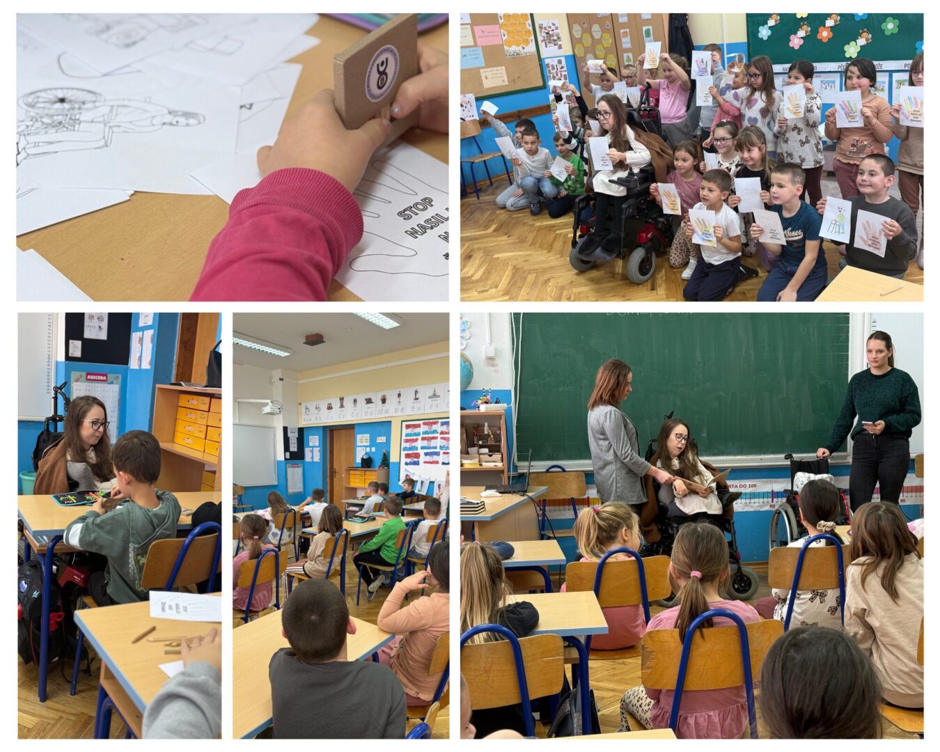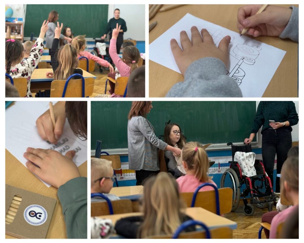 Nakon čitanja, učenici su kroz aktivnosti bojanja upoznali različita ortopedska pomagala te otkrili kako ta pomagala olakšavaju svakodnevne izazove. Poseban doživljaj bilo je isprobavanje invalidskih kolica — prilika da na trenutak iskuse drukčiji način kretanja i bolje razumiju prepreke s kojima se neki ljudi svakodnevno susreću.