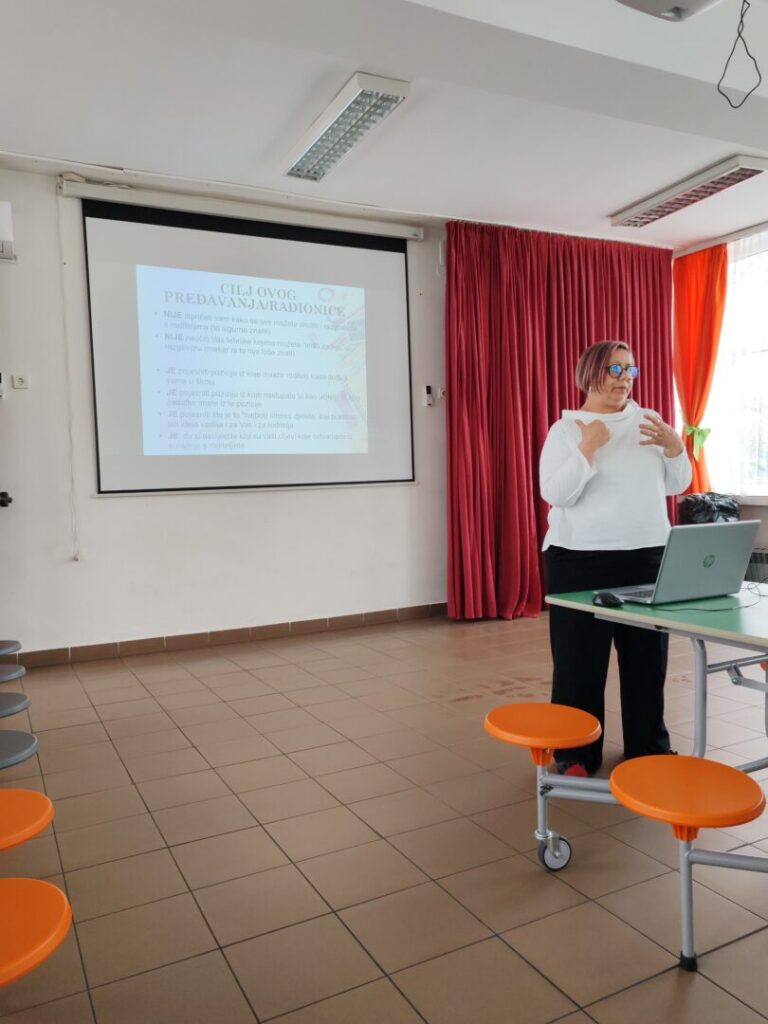 Dio predavanja bio je organiziran u obliku radionice, tijekom koje je naglašeno kako svaka osoba u komunikaciju ulazi s vlastitim osjećajima, iskustvima i pretpostavkama. Upravo zato važno je prepoznati te razlike te pronaći zajedničke točke koje mogu poslužiti kao temelj za daljnju konstruktivnu suradnju.