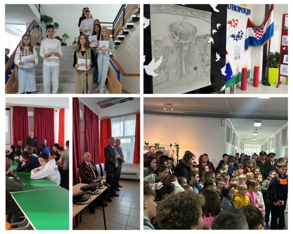 Poslije predavanja slijedio je svečani program Dana sjećanja na žrtve Domovinskoga rata te Dana sjećanja na žrtvu Vukovara i Škabrnje u kojemu su sudjelovali učenici Filip Grdić, Ema Pešut (7. a razred), Nicol Jovičić, Helena Momčilović (7. b razred), Vjera Bulat, Magdalena Zubić, Tara Maras, Sara Perković (7. c razred), David Pešec (8. a razred) te Josip Šimić (8. b razred). Brojni su učenici izradili likovne radove i napisali poruke braniteljima te na taj način uveličali taj poseban dan. Nakon programa učenici su s učiteljima zapalili lampione prisjećajući se žrtava Domovinskoga rata.
