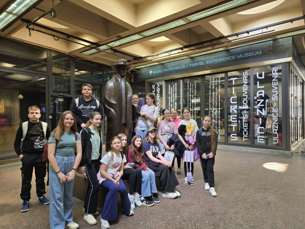 Učenici naše škole u petak 24. travnja 2026. godine posjetili su glavni grad. U sklopu B1/A2 aktivnosti Domaćinstvo i Povijest prehrane naši su školarci u pratnji učiteljica Matilde Tripalo i Jasne Čapo, asistentice Dragane Jonaš i učitelja Matije Brckovića posjetili novootvoreni „Muzej putovanja“. Kroz edukativno vođenje kustosa učenici su saznali mnoštvo informacija o povijesti putovanja, geografskim pomagalima koja su doprinijela otkrićima drugih kontinenata, najvažnijim svjetskim i vjerskim središtima te prijevoznim sredstvima bez kojih brojne ekspedicije i putovanja ne bi bila moguća. Učenicima su najzanimljivija bila virtualna 3D putovanja kroz svjetske krajolike i gradove.