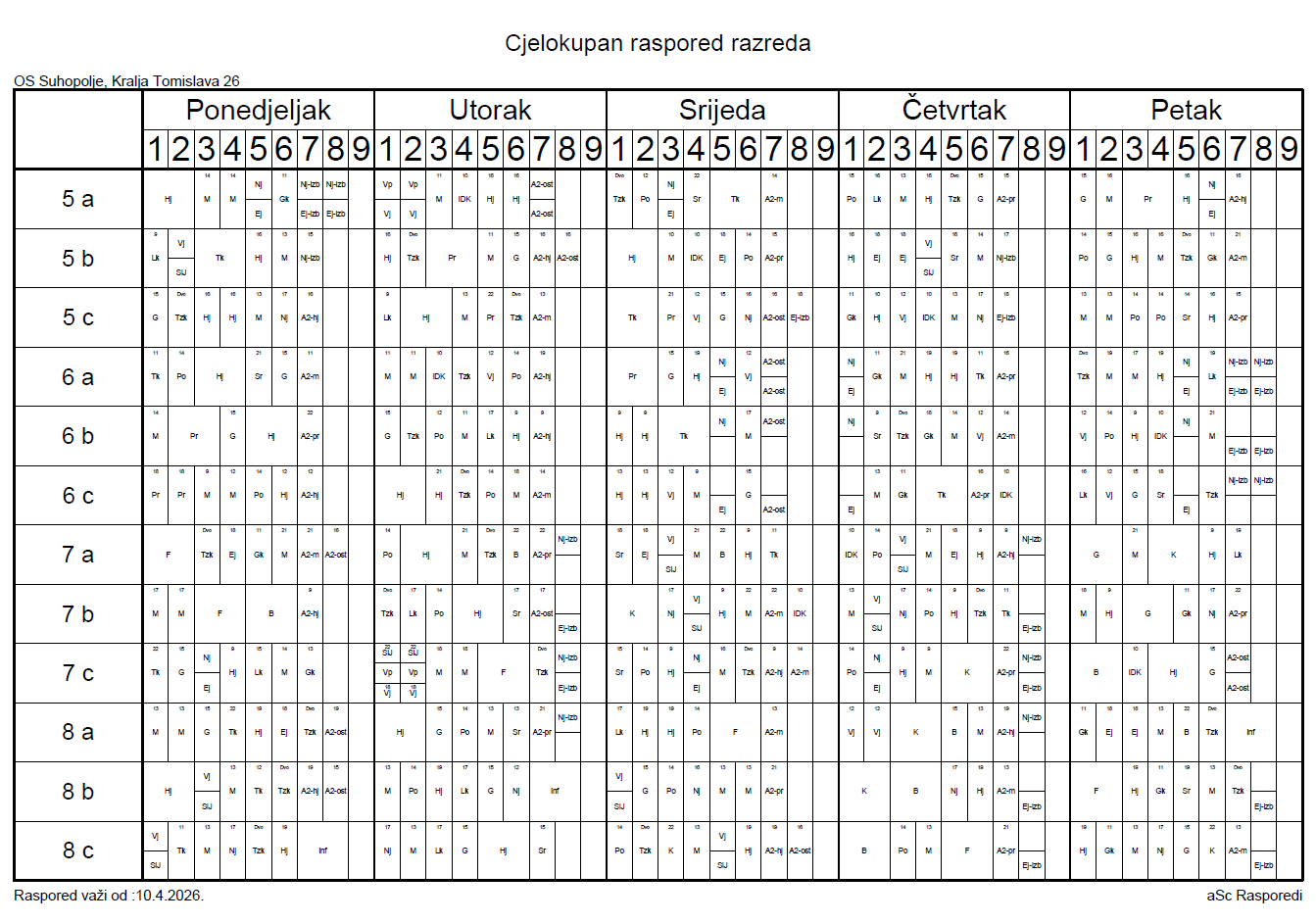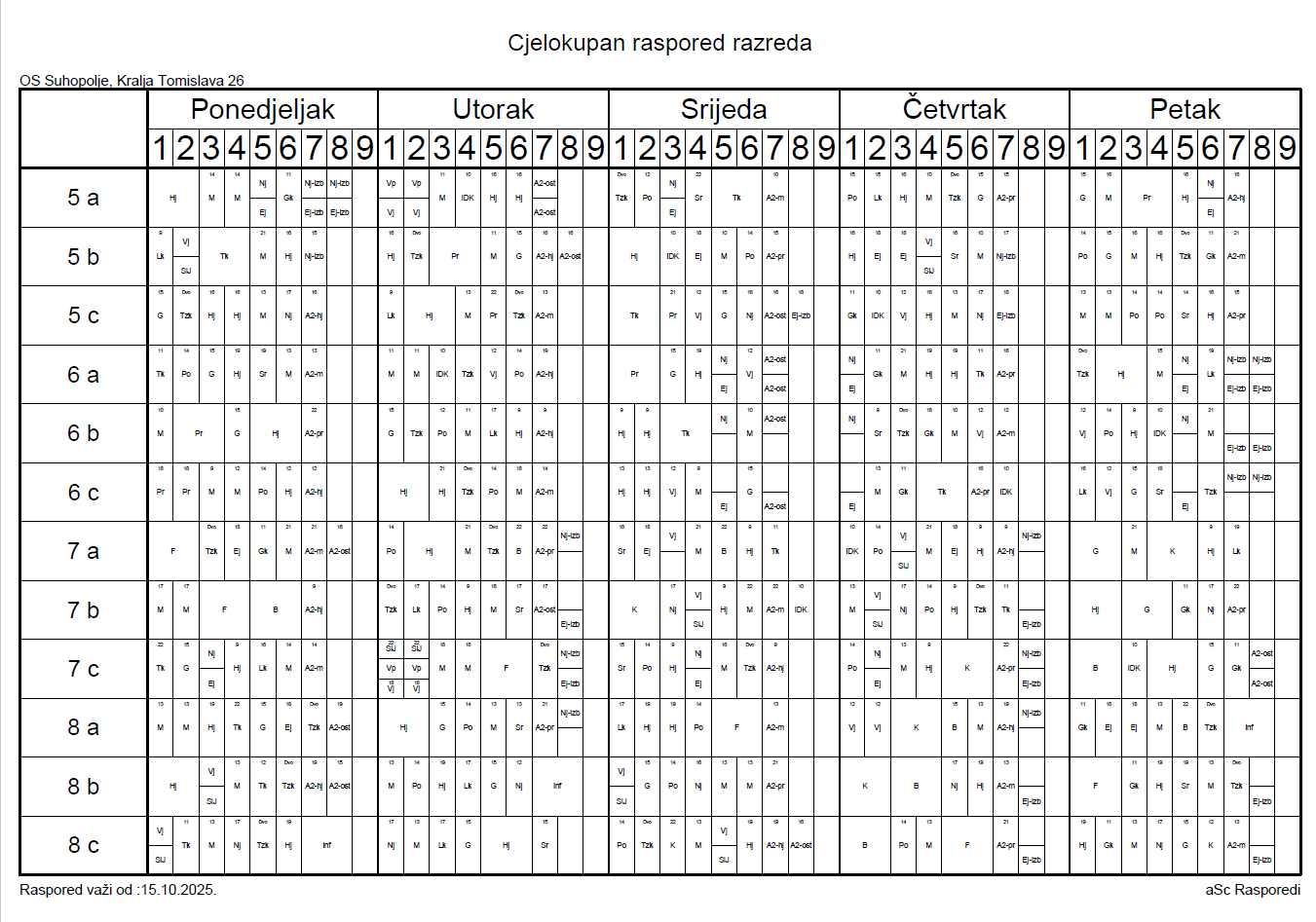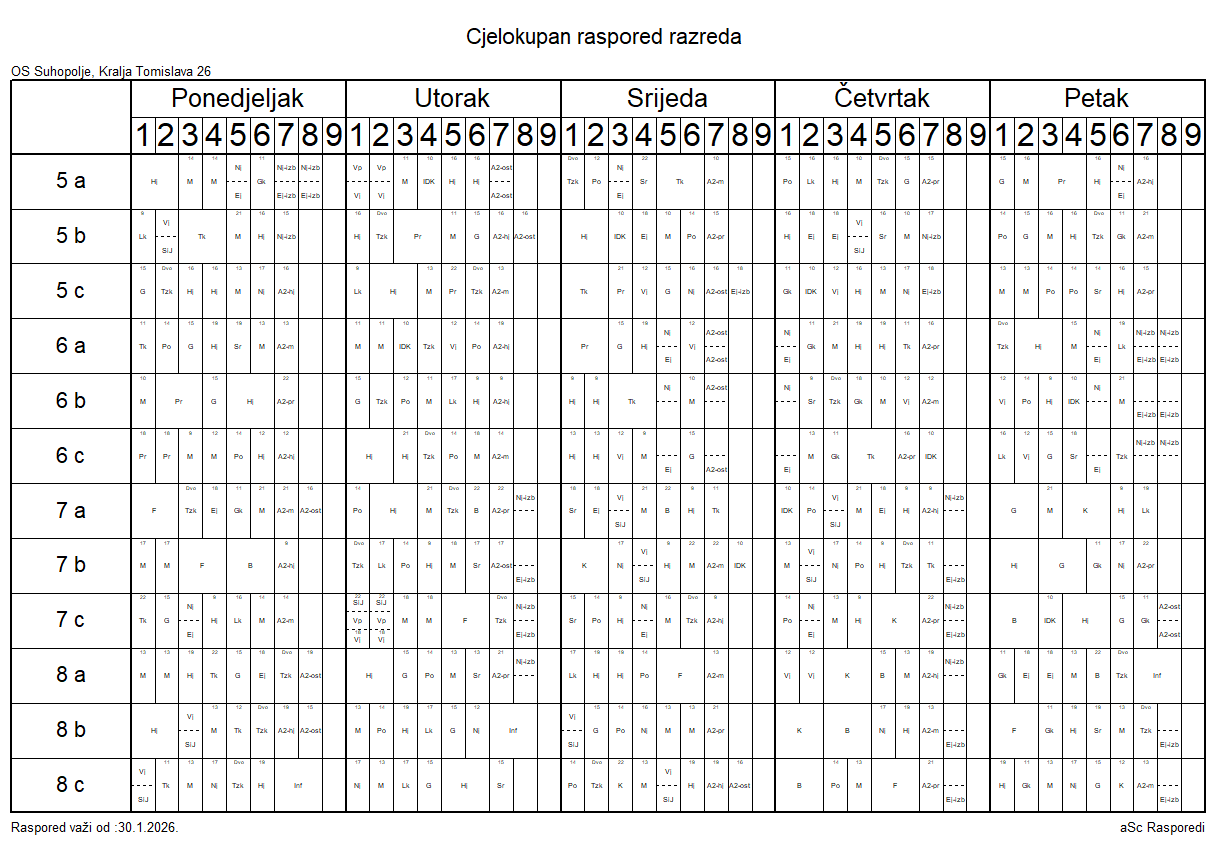 Preuzmite RASPORED SATI 2025 – 2026 za predmetnu nastavu