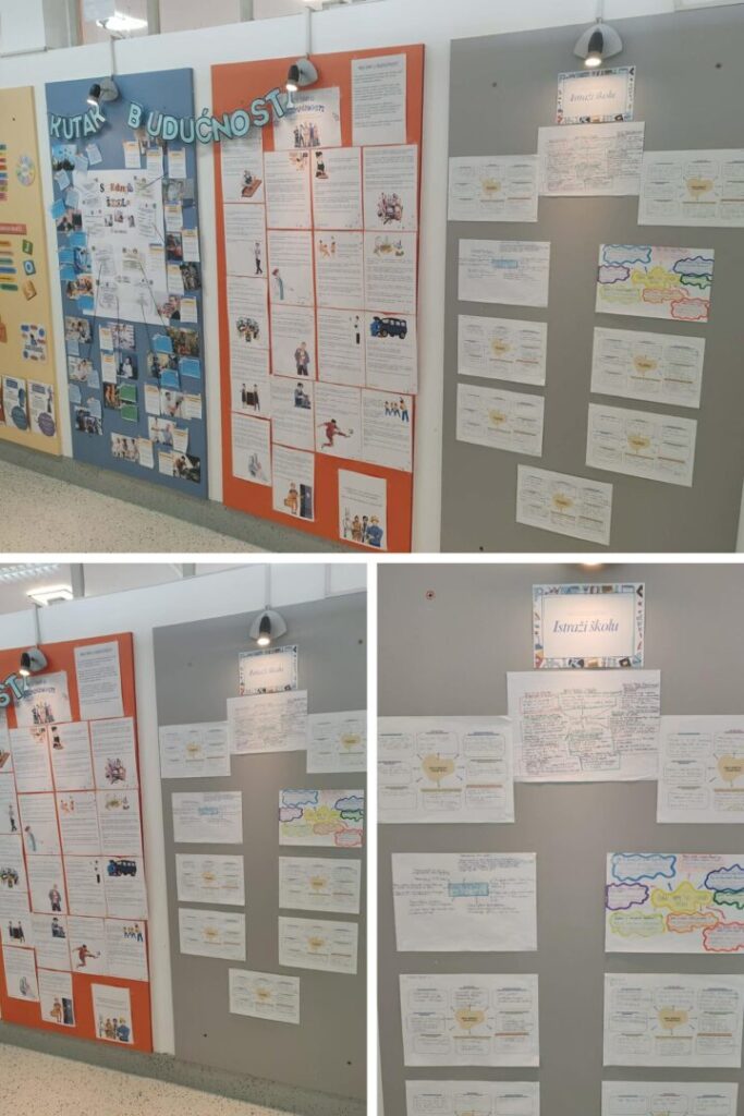 Radovi učenika izloženi su u školskom „Kutku budućnosti“, koji je obogaćen korisnim informacijama o srednjim školama te učeničkim radovima nastalim u sklopu navedenih B1 aktivnosti.
