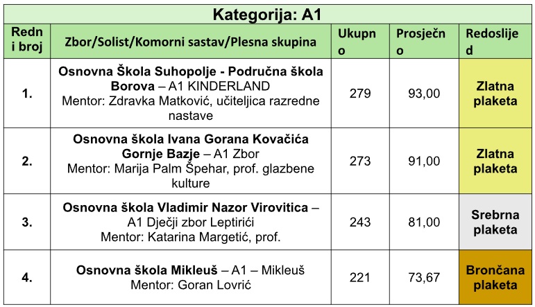 Pod vodstvom mentorice Zdravke Matković, naši su učenici svojim trudom, vedrinom i prekrasnim pjevanjem osvojili stručno povjerenstvo i zasluženo kući ponijeli ZLATNU PLAKETU s 93 boda u kategoriji A1.